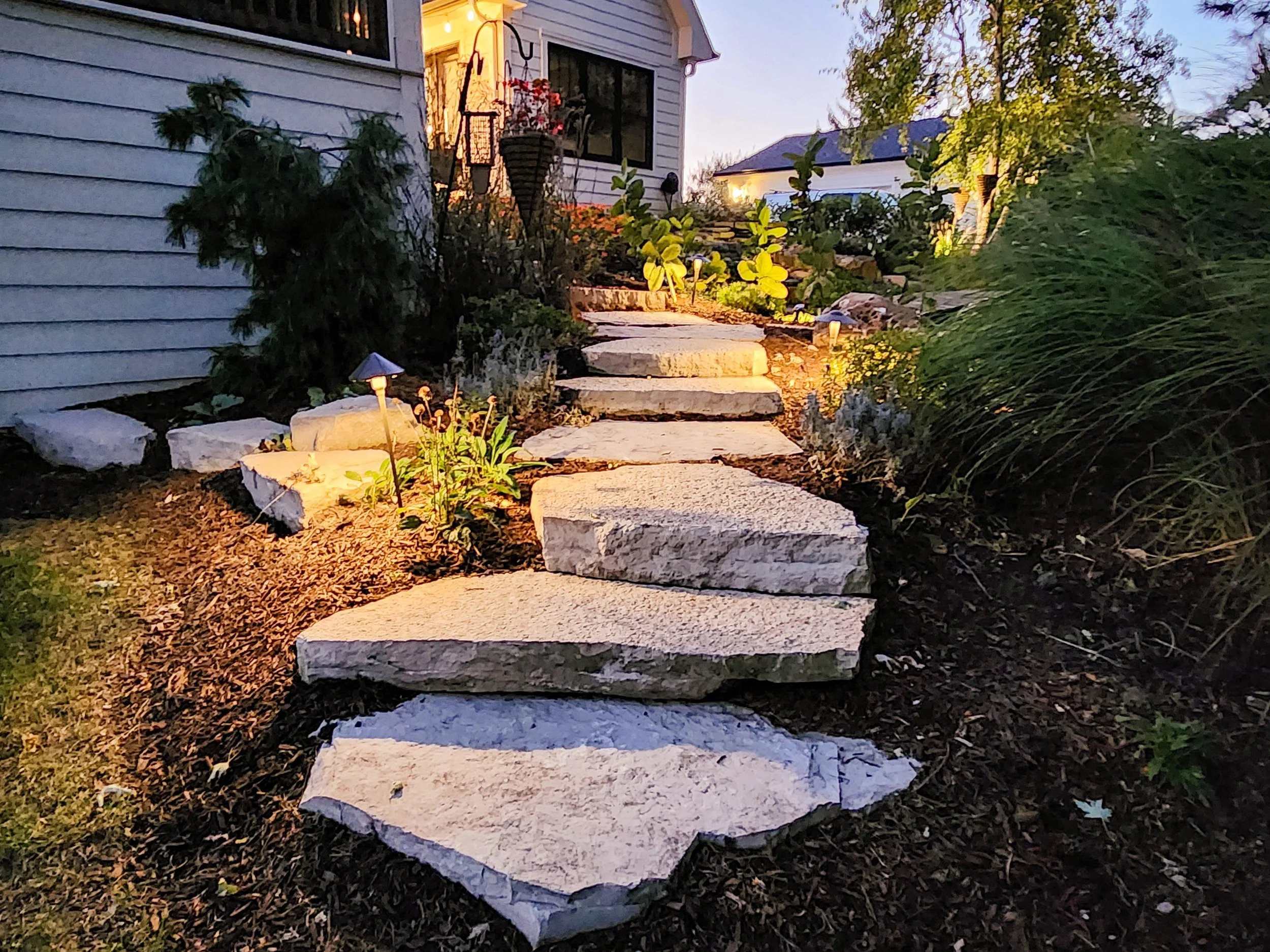 Strategically placed lights illuminate steps, walkways, driveways, and entry points for peace of mind..